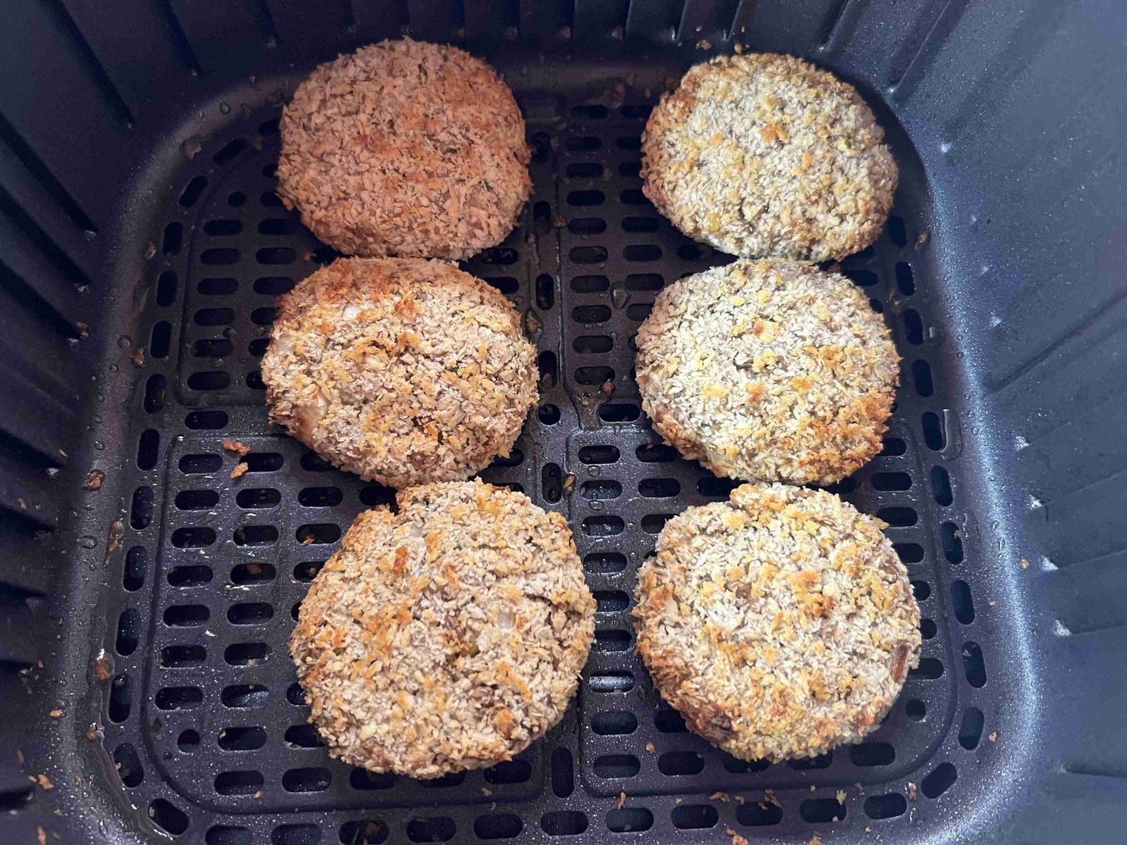 • Mezcla todos los ingredientes y forma bolitas de unos 50-60 gramos; aplánalas ligeramente antes de colocarlas en la freidora de aire.
