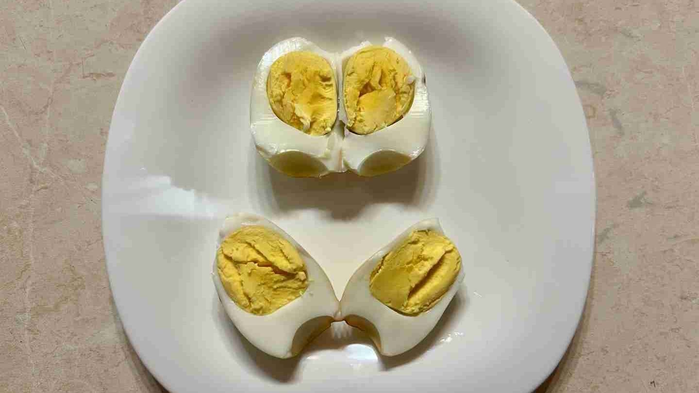 - Así se ve tu huevo duro al cortarlo. Con él puedes preparar una crema de huevo, una ensalada o disfrutarlo en un sencillo bocadillo.